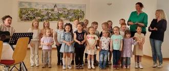 Im Mittelpunk stand dann der Gesang der Kindergartenkinder Kita Anhausen. Sie begeisterten mit verschiedenen Liedvorträgen das Publikum.