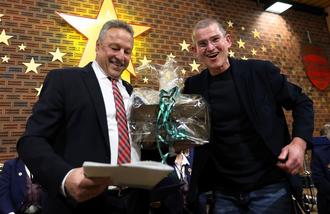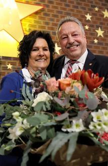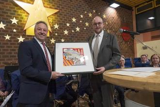 Ein ganz besonderer Dank galt seiner Familie und Ehefrau Petra, der er auf der Bühne einen großen Blumenstrauß überreichte. Der Musikverein Harmonie Kurtscheid begleitete den Abend musikalisch und spielte auf besonderen Wunsch von Breithausen zum Abschied „One Moment in Time“ von Whitney Houston. Damit war der offizielle Teil beendet, aber nicht die Veranstaltung.