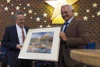 Er ließ die beruflichen Stationen von Breithausen, der 49 Jahre für die Verbandsgemeinde tätig war, Revue passieren. Als wichtige Meilensteine nannte er unter anderem die Unterstützung der Jugend und des Sports, Förderung des Ehrenamtes, der Grundschulen und Kitas, die vollzogene Fusion der beiden Verbandsgemeinden Rengsdorf und Waldbreitbach, den Bürgerbus, den Tourismus, Gründung der Solargenossenschaft sowie den Schuldenabbau der Verbandsgemeinde. Besonders heraus hob Eckert die Unterstützung der Feuerwehr und deren Zusammenführung nach der Fusion. Breithausen war doch selbst viele Jahre aktiver Feuerwehrmann, zuletzt im Rang eines Brandmeisters. In seiner Rede ging Landrat Achim Hallerbach auf die gemeinsamen Leistungen von Verbandsgemeinde und Kreis ein. Er dankte für die bisherigen Leistungen. Wörtlich: „Ich danke Dir: für Dein stets faires, kollegiales und konstruktives Miteinander.