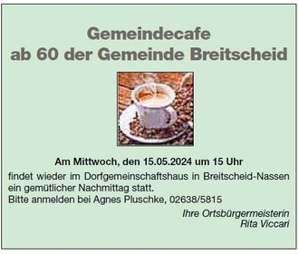 findet wieder im Dorfgemeinschaftshaus in Breitscheid - Nassen ein gemütlicher Nachmittag statt.
