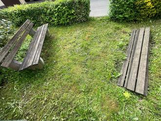 Eine kaputte Bank wurde entfernt die vorhandene Bank wird gestrichen.