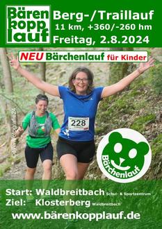 Am Freitag, 2. August organisiert der VfL Waldbreitbach den vierten Bärenkopplauf. Er findet auf dem beliebten und ganzjährig ausgeschilderten Premiumwanderweg „Wäller Tour Bärenkopp“ im Naturpark Rhein-Westerwald statt.