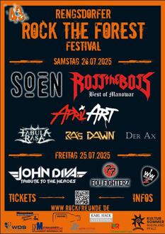 Rock the Forest 2025 - weil Rockmusik nicht nur gehört, sondern gelebt wird. Dank Ehrenamt. Dank euch. Und dieses Jahr mit einem Metal-Urgestein und einer der besten Rock-Bands Europas - mitten in Rengsdorf. Sei dabei.