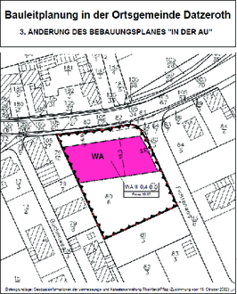 Der Gemeinderat der Ortsgemeinde Datzeroth hat am 13.12.2022 die 3. Änderung des Bebauungsplanes „In der Au“ gemäß § 10 Abs. 1 Baugesetzbuch (BauGB) als Satzung beschlossen. Die Ortsbürgermeisterin hat den Bebauungsplan am 16.01.2023 ausgefertigt.