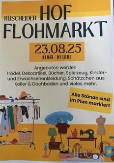 Der Hofflohmarkt findet am 23.8.25 in Rüscheid statt. Die Stände sind in der Zeit von 11 bis 16 Uhr geöffnet.