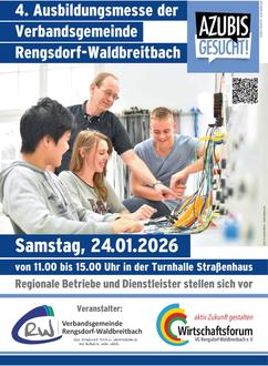 Nach dem stetig wachsenden Zuspruch der vergangenen Jahre veranstalten die Verbandsgemeinde und das Wirtschaftsforum Rengsdorf-Waldbreitbach auch 2026 wieder ihre Ausbildungsmesse. Am Samstag, den 24. Januar 2026, öffnet die Turnhalle in Straßenhaus von 11:00 bis 15:00 Uhr erneut ihre Türen für Schülerinnen und Schüler, die sich über berufliche Perspektiven informieren möchten.