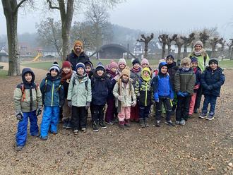 Nach der Begrüßung im Klassenraum ging es zunächst in den Park der Oberen Burg, in dem sich Eschweiler und die Kinder vorstellten. Auf das erste Spiel mussten die Kinder nicht lange warten, denn schon im Park galt es, Spurensuche zu betreiben. Hierfür wurden verschiedene Schleichtiere hinter Büschen oder Bäume versteckt. Der Entdeckergeist der Kinder spürte die Tiere auf, die anschließend von ihnen benannt wurden: Dachs, Hirsch, Eichhörnchen, Fuchs, Eule und weitere Waldbewohner, aber auch Katze und Hund. Im Anschluss spazierte die Gruppe in den Wald, wo die Grundschüler eine Frühstückspause mit Freispielzeit einlegten. Bei dem nächsten Spiel pirschten sich die Kinder als Füchse einzeln an ihre Lehrerin (als Maus) heran, die mit dem Rücken zu ihnen stand. War das ein oder andere Kind zu laut, durfte sich die Lehrerin umdrehen. Wer sich dann noch bewegte, musste zurück zur Startlinie. Mit leisen Sohlen meisterten schließlich alle die Aufgabe. Auf dem Programm der erlebnispädagogischen Spiele stand auch das Partnerblindenführspiel mit Augenmasken und wechselnden Rollen. „Konzentrierte Entspannung brachten die folgenden acht Minuten, in denen die Kinder sich einen Sitzplatz suchen und je auf das lauteste und leiseste Geräusch achten und es später benennen können sollten“, berichtet die Grundschule. Zum Schluss hatte Eschweiler eine Strecke mit Führseil von Baum zu Baum gespannt, an dem sich jedes Kind allein mit Augenklappe langsam selbst entlangfühlen- und führen sollte: Aufgeweckte Hände und Füße waren dazu nötig. Nach den erlebnisreichen Stunden gemeinsam im Wald ging es gegen Mittag wieder zurück Richtung Grundschule. „Alle Kids fanden den Vormittag sehr schön, wobei von einigen Kindern in einer schnellen Rückmelderunde einzelne Herausforderungen als besonders gut hervorgehoben wurden.“