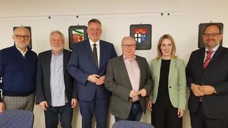 Der Vorsitzende der CDU-Landtagsfraktion, Gordon Schnieder (Mitte), und die Vertreter der heimischen CDU (von links) Alfons Mußhoff, Professor Dr. Wolfgang von Keitz, Markus Fischer, Ellen Demuth MdL und der CDU-Kreisvorsitzende Jan Petry bei der gemeinsamen Informationsveranstaltung von CDU-Gemeinde- und Ortsverband Unkel über die vom Land festgelegten Anhebungen der kommunalen Steuern.