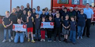In diesem Jahr konnten sich nun gleich 2 Organisationen über eine Spende freuen. Anlässlich des Sommerfestes der Freiwilligen Feuerwehr Bruchhausen überreichte das Glühweinteam je einen Scheck in Höhe von € 555,55 an die Bambini-Feuerwehr unter der Leitung von Theresa Menden und an die Jugendfeuerwehr der Verbandsgemeinde Unkel unter der Leitung von Sven Schmidtchen.