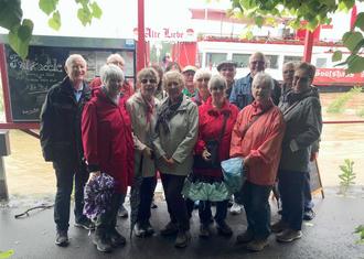 Mehr als 20 Mitglieder des Obst- und Gartenbauvereins (OGV) Rheinbreitbach ließen sich weder von regnerischem Wetter noch vom hohen Pegel des Rheins von der Wanderlust abhalten. Sie folgten einer Einladung des Vorsitzenden Norbert Buchbender, die Vize Josef Weich in bewährter Weise vorbereitet hatte. Es sollte am Rhein entlang zur „Alten Liebe“, einem Restaurant-Schiff, das in Königswinter vor Anker liegt, gehen. Dort waren schon leckere Speisen vorbestellt.