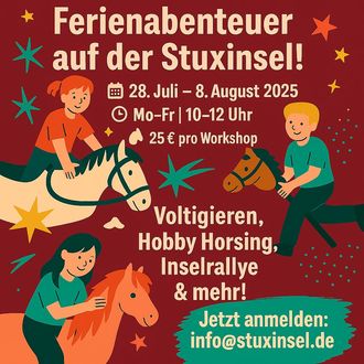 „Ob beim Voltigieren, einer Inselrallye oder beim Putzen und Frisieren der Ponys - im Mittelpunkt stehen Spaß, Bewegung und ein respektvoller Umgang mit unseren Tieren“, so die Organisator:innen. Weitere Programmpunkte sind Inselausflüge, ein Hobby Horsing Turnier, Geschicklichkeitsspiele und ein Putzwettbewerb - natürlich angepasst an Wetter und Gruppendynamik.
