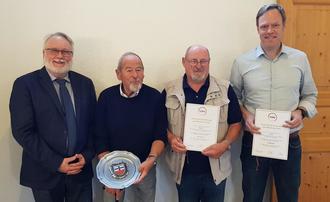 CDU Vorsitzender Wolfgang von Keitz (links) zeichnete Günter Küpper, Heinz Liehmann und Jörg Eggenstein für ihre langjährige Mitgliedschaft in der CDU aus.