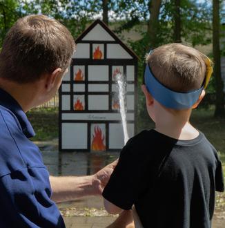 Nina Wambach - Am Stand der Freiwilligen Feuerwehr Erpel löschten Nachwuchsfeuerwehrleute einen Hochhausbrand nach dem Nächsten