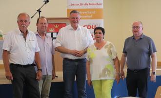 v.l.: Werner Henneker, Fraktionsvorsitzender CDU Erpel; Günter Hirzmann, Ortsbürgermeister; Gordon Schnieder, Generalsekretär und MdL; Beate Lister, Vorsitzende des CDU Ortsverbandes; Markus Fischer, Vorsitzender des CDU Gemeindeverbandes