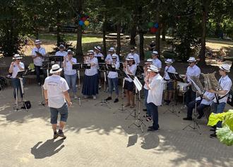 Ende Juni traf sich das Corps zum Auftritt in der KiTa Regenbogenland, die ihr 30(+1)-jähriges Bestehen mit einem großen Fest feierte. Bei tollem Sommerwetter kamen Spiel und Spaß für die Kleinsten nicht zu kurz und das Corps präsentierte viele Stücke aus seinem Konzertrepertoire.