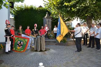 In dem Festzelt schwenkte unter anderem Anton Klein die Vereinsfahne.