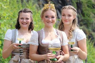 Weinkönigin Lara und ihrer Weinprinzessinnen sowie Bacchus Dominik freuen sich auf Ihren Besuch.