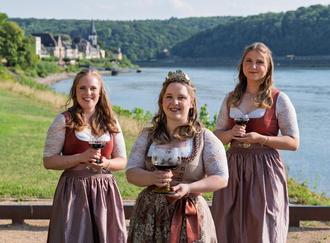 Weinprinzessin Lena (von links), Weinkönigin Hanna und Weinprinzessin Leonie werden am 6. September intrhonisiert
