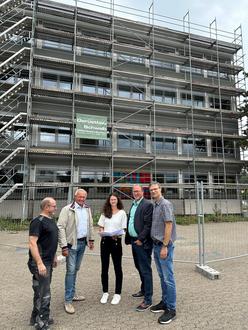 Landrat Achim Hallerbach und der 1. Kreisbeigeordnete Phillip Rasbach ließen sich von Marco Müller und Christina Junk (Kreis-Immobilienmanagement) und Realschul-Hausmeister Dietmar Kefer den Stand der Bauarbeiten an der Stefan-Andres-Realschule plus in der Kulturstadt Unkel erläutern.