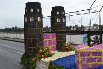Im Rahmen des Erpeler Weinfests fand - bei leider schlechten Wetterbedingungen - am Sonntag der traditionelle Blumenkorso statt. Die Zuschauer, die dem Regen trotzten, bekamen viele tolle Motivwagen zu sehen, wie z.B. diese nachgebauten Brückenpfeiler.