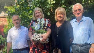 Für die CDU Rheinbreitbach gratulieren der Ortsvorsitzende Bernhard Groß, die Mitgliederbeauftragte Petra Baumann-Kreft und der Vorsitzende der Ratsfraktion, Dr. Heinz Schmitz, Ex-Bürgermeisterin Ulrike Jossen zu ihrem runden Geburtstag.