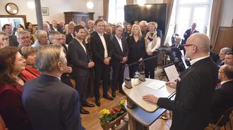 Bei ihrem Neujahrsempfang am Sonntag, 12. Januar, hat die Stadt Unkel Engelbert Wallek mit der Ehrennadel ausgezeichnet. Den Festvortrag hielt Marc Büker, Geschäftsführer von Haus Rabenhorst. Die Unkeler Ratsherren begleiteten die feierliche Veranstaltung musikalisch.