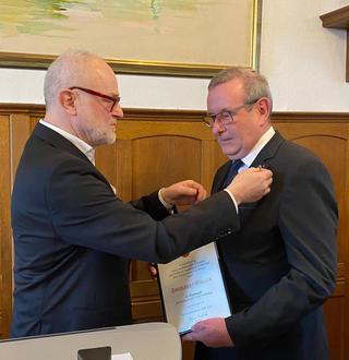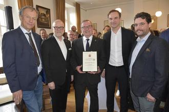 Der Stadtbürgermeister überreichte Urkunde und Ehrennadel.