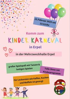Am 15. Februar 2025 ab 13:00 Uhr startet in der Mehrzweckhalle Erpel, Winzerstraße 8, 53579 Erpel die Kindersitzung unter Führung der Prinzengarde Erpel.