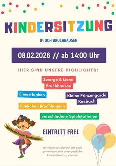Die Sprühenden Funken Bruchhausen laden alle Kinder und ihre Familien herzlich zur Kindersitzung in Bruchhausen ein.