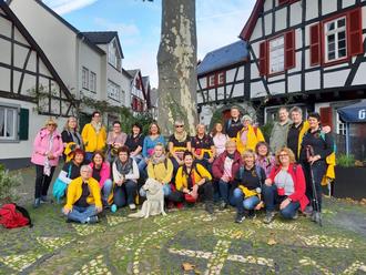 Einen Tag später, am 03.10.22, fand unser Wandertag statt. Man startete gegen 12 Uhr am „Scheurener Dom“ und ging Richtung Gerhardswinkel Unkel, wo die Unkeler zur Gruppe stießen. Dann ging es weiter nach Erpel. Die Herzblättchen erkundeten die liebevoll gestalteten Holzbänkeund informierten sich über deren Geschichte anhand eines Infoblattes.