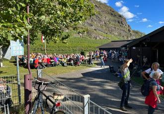 Die mehr als 250 Wanderer beim 22. „Unkeler Dreisprung“ mögen sich bei traumhaften Spätsommerwetter an dieses schöne alte Volkslied erinnert haben. Die Wanderschar bescherte den Veranstaltern vom Touristik und Gewerbeverein Unkel und dem Bürgerverein Unkel den erhofften Erfolg. Schirmherr Stadtbürgermeister Gerhard Hausen sowie die Organisatoren, Helferinnen und Helfer - allen voran Knut v. Wülfing und Engelbert Wallek für die T&G und Andreas Kuhsel und Hilla Welsch für den Bürgerverein - freuten sich über den großen Zuspruch. Hörten sie doch immer wieder anerkennende Worte der begeisterten Teilnehmerinnen und Teilnehmer. Einzeln und in Gruppen zogen sie am frühen Morgen vom Rhein hinauf auf die aussichtsreichen Höhen.
