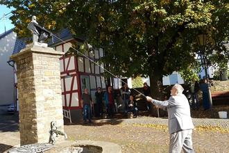 Der Scheurener Dorfbrunnen hat nun eine neue Barbara-Figur. Im Rahmen einer Feierstunde des St. Joseph Bürgervereins Scheuren enthüllte Architekt Günter Bornheim die neue Statue. Er war 1984 maßgeblich beteiligt, als der Brunnen im Schatten des „Scheurener Doms“ von der Bürgerschaft errichtet wurde. Auch die Künstlerin Helene Ramershoven aus Rheinbreitbach, die in den 80er Jahren die Vorlage für die Figur geschaffen hatte, nahm an der Feierstunde teil.