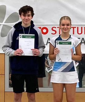 Eine Woche später trat er in Mendig auch im Mixed an. Mit Jella Strahl (SV Mendig) wurde er seiner Setzposition gerecht und holte die Vizemeisterschaft, nachdem er im Halbfinale in einem spannenden Dreisatz-Spiel die Remagener Kombination Gebhardt/Schlepp hinter sich ließen. Im Finale konnten sie erwartungsgemäß den älteren und überregional erfahreneren Favoriten Mika Schönborn/Sina Chalgoum (Betzdorf/Andernach) nicht genug Paroli bieten.
