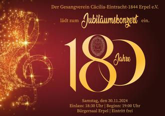 In diesem Jahr hat der Gesangverein Erpel einen besonderen Grund zu feiern, denn der Chor kann mit Stolz auf seine 180-jährige Vereinsgeschichte zurückblicken. Anlässlich dieses besonderen Ereignisses laden die Sängerinnen und Sänger des Chores zu ihrem Jubiläumskonzert ein.