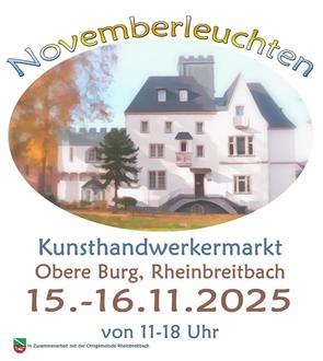 Jährlich Anfang November findet in der Oberen Burg Rheinbreitbach der beliebte Kunsthandwerkermarkt „Novemberleuchten“ statt.