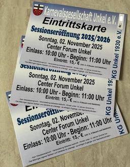 Es dürfte eine der ersten Sessionseröffnungen in der Region sein. Bereits am 02.11.2025 startet die KG Unkel mit bekannten Kölner Bands und befreundeten Vereinen in den Fastelovend. Mit dabei sind die RÄUBER, MILJÖ, STADTRAND und FIASKO. Los geht es im Center-Forum um 11:00 Uhr, Einlass ist ab 10:00 Uhr. Eintrittskarten gibt es an der Info des Vorteil-Center in Unkel zum Preis von 15 €. Kinder bis 12 Jahre haben in Begleitung ihrer Eltern freien Eintritt.