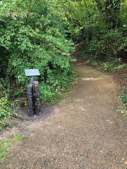 Am Eingang weist eine Infotafel auf den jüdischen Friedhof hin.