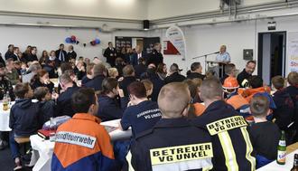 Das Feuerwehrgerätehaus in Bruchhausen war Anlaufpunkt für viele Kameraden und Familien, deren Kinder nun ein neues Hobby haben. "21 Kinder haben sich für die neue Bambini-Feuerwehr angemeldet", freute sich Theresia Menden, die zukünftige Bambiniwartin. Bei der Gründungsfeier der neuen Bambinifeuerwehr der Verbandsgemeinde, wurde Menden von Bürgermeister Karsten Fehr zur Bambiniwartin ernannt. Sie ist 25 Jahre bei der Feuerwehr, hat in dieser Zeit an 29 Fortbildungen teilgenommen, wurde mit dem Feuerwehrleistungsabzeichen Bronze und Silber sowie dem Bronzenen Feuerwehr-Ehrzeichen ausgezeichnet. "Ich freue mich, sie heute als Bambiniwartin der Verbandsgemeinde Unkel ernennen zu dürfen", sagte Fehr. Die Idee zur Gründung der Bambinifeuerwehr kam von Menden. "Die Jugendfeuerwehr beginnt mit zehn Jahren. Viele Kinder haben sich bis dahin jedoch schon ein Hobby gesucht. Die Bambinifeuerwehr ist ein Angebot für unter Zehnjährige, sich bei der Feuerwehr spielerisch zu engagieren", erzählte Menden, dass sich die Feuerwehren in der Verbandsgemeinde freuen würden, wenn die Begeisterung der Kinder über die Jahre anhalte und diese später in den aktiven Dienst übertreten würden. Nach den Gesprächen mit Wehrleitung und Wehrführern sei die Nachricht über die vereinbarte Gründungsabsicht in den einzelnen Löschzügen der Verbandsgemeinde umgegangen. "Die Resonanz war überwältigend. Die Nachfrage war größer als gedacht", berichtete Menden von der Warteliste. Die unterstützenden Betreuer der Gruppe wurden ebenfalls von Fehr vorgestellt: Manuel Acker, Saskia Abel, Simone Eich, Claudia Fink, Juliane Herrmann und Annemarie Lubsczyk. Sie erhielten ihre Bestellungsurkunde. Formal sei die Gründung der Bambini-Feuerwehr ein wichtiger Meilenstein des Personalentwicklungskonzepts "Feuerwehr", sagte Fehr. "Nachhaltige Personalentwicklung, Ausbildung und stetige Weiterqualifizierung sind wichtiger denn je", bedankte sich der Bürgermeister bei den Eltern für das entgegengebrachte Vertrauen. Bei einem vorangegangenen Elternabend konnten sie sich über das "Bambini"-Konzept informieren. Zum Konzept zählt die Brandschutzerziehung durch Spiel und Spaß, aber auch die Vermittlung von Werten wie Kameradschaft, Freundschaft und Teambildung. Die 21 Bambinis sind mit einem Rucksack mit T-Shirt, Basecap und Süßigkeiten ausgestattet worden. Das T-Shirt trägt das neue Logo der Bambinifeuerwehr. Die BHAG stiftete Notruf- und 1. Hilfe-Koffer, der Landesfeuerwehrverband stiftete ein Brandhäuschen, sodass die neue "Einheit" nun mit einer Grundausstattung loslegen kann. Am 18. November geht es für die Bambinis los mit dem "Streichholzführerschein". Vom Landesfeuerwehrverband war Bernd Dillbahner da, der die Gründungsurkunde überreichte. Es gratulierten auch Walter Eudenbach vom Kreisfeuerwehrverband und Kreisjugendfeuerwehrwart Matthias Lemgen, die unter anderem von Fehr und Wehrleiter Ralf Wester empfangen wurden.