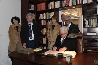 Der Bundespräsident Frank-Walter Steinmeier und dessen Gattin Elke Büdenbender haben zusammen mit dem finnischen Präsidenten Sauli Niinistö und dessen Ehefrau Jenni Haukio die Stadt Unkel besucht. Dabei hinterließ der Bundespräsident auch einen Eintrag in das Goldene Buch der Stadt Unkel.