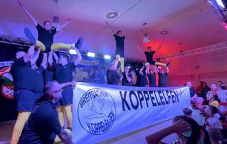 Den großen Aufmarsch mit Weckmöhnen und Burgbläsern, Tänzern und Tänzerinnen der Burggarde und natürlich den fleißigen Mitgliedern der Karnevalsgesellschaft moderierte Präsident Andreas Frings mit den salbungsvollen Worten: „Tradition und Neuanfang! Das ist der Karneval in Rheinbreitbach.“ Der neue Orden der Karnevalsgesellschaft spiegelt das perfekt wider: gewidmet dem Rheinbreitbacher Sporteck, der letztverbliebenen Kneipe im Ort, ihren alten und neuen Freunden, insbesondere den Koppelelfen, die als jüngster Verein Rheinbreitbachs das Ziel verfolgen diese Instanz zu erhalten. Die wackeren Kneipenretter sind aber nicht nur Thekenkräfte (hinter und genauso gerne vor der Theke!), eine Abordnung der Elfen betätigt sich auch tänzerisch - als Männerballett. Sie tanzten das Finale dieser rundum gelungenen Sessionseröffnung, der als Gäste die Erpeler Stadtsoldaten mit Prinzenpaar und Garde, die KG Unkel sowie der Spielmannszug des TV Eiche aus Bad Honnef beiwohnten.