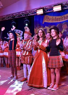 Freudestrahlend, Strüssje werfend, selbstbewusst - und auf der Bühne dann mit E-Gitarren! - so präsentierten sich die Neuen. Ihr Motto: Mir sin die Hardrock Pänz! Unter dem Jubel der rund 250 Gäste stellte die ebenfalls neu ins Amt berufene Prinzenführerin Jessica Tjaden das „Paar im Ornat“ genauer vor. Der 11-jährige Benedikt spielt demnach leidenschaftlich E-Gitarre, engagiert sich bei der Jugendfeuerwehr und besucht die Gesamtschule Sankt Joseph in Bad Honnef. Karneval gehört in seiner Familie zur DNA: schon Vater Andreas, heute Geschäftsführer der KG (im Nebenberuf Leiter des Ordnungsamtes in Unkel), war vor genau 30 Jahren Rheinbreitbacher Kinderprinz. Mama Katja ist von Kindheit an im Karneval und in verschiedenen Tanzgarden der Verbandsgemeinde unterwegs.