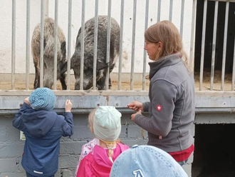 Das Treffen mit Knurzi war für die Kinder ein aufregendes Erlebnis. Das verspielte Wildschwein, das mit den Kindern einen Ball „kickte“ und sich gerne streicheln ließ, sorgte für jede Menge Freude. Dabei entdeckten die Kinder, dass Knurzis Borsten ziemlich fest sind, während der Bauch besonders weich war.