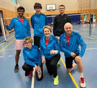 Vorne die Oldies Sandra Schreiber, Claudia Bauch und Claus Schulte, hinten die Youngster Anand, William Unkel und Lukas Walter