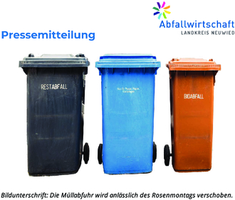 Kreis Neuwied. Anlässlich des Rosenmontags am 12.02.2024 informiert dieAbfallwirtschaft Landkreis Neuwied über die geplante Nachfuhr und dieSchließung der Wertstoffhöfe an diesem Tag.