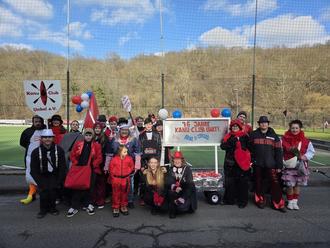 Am 15.02.2026 kamen 21 jecke Kanuten nach Rheinbreitbach. Die Vereinsmitglieder waren in Feierlaune und pünktlich zum 75. Jubiläumsjahr unter dem Motto „Ahoi & Cheers“ kamen alle in Vereinsfarben und viel Glitzer und Konfetti, um die Zuschauer zu begeistern. Es wurden fleißig Kamelle verteilt, die Bollerwagen waren hochgefüllt mit Wurfmaterial. Die Flyer als Einladungen zum Jubiläumsfest am 20.06.2026 wurden an alle verteilt. Die Paddelfreunde freuten sich, ein Teil des großartigen Zugs in Rheinbreitbach zu sein. Bei gutem Wetter und bester Laune ging es durch die Straßen. Zum Abschluss wurde in der Hans-Dahmen-Halle getanzt, geschunkelt und gesungen.