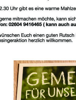 Ab 12.30 Uhr gibt es eine warme Mahlzeit im Gemeindehaus für alle Helfer.