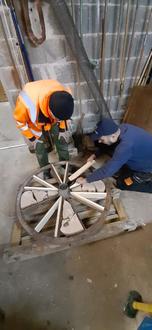 Bis dahin gibt es noch genug andere Dinge zu tun. In der Werkstatt der Gemeinde wird zur Zeit ein weiteres Insektenhotel aus einem alten Wagenrad gebaut, welches dann später im Ort aufgestellt werden soll.