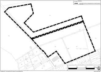 Der Geltungsbereich des Bebauungsplanes ist in nachstehend abgedrucktem Flurkartenausschnitt mit einer dicken, unterbrochenen Linie umgrenzt.
