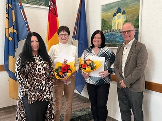 Erster Beigeordneter Lutz Zaun übereichte Frau Wolf die Urkunden des Ministerpräsidenten des Landes Rheinland-Pfalz zum 40-jährigen Dienstjubiläum sowie einen Blumengruß der Verbandsgemeinde Bad Ems-Nassau. Frau Heil erhielt aus seinen Händen eine Dankurkunde der Verbandsgemeinde Bad Ems-Nassau für das 25-jährige Dienstjubiläum und ebenfalls einen Blumenstrauß.