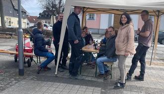 Im Anschluss trafen sich alle zur Stärkung auf dem Marktplatz, wo im Anschluss über die Neugestaltung des Platzes durch Marvin Schmidt (Mitglied des Dorfentwicklungsausschusses) informiert wurde.